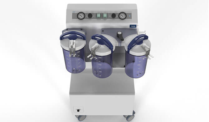 Twee chirurgische zuigers in één behuizing; Ruimtebesparend, krachtig en stil.