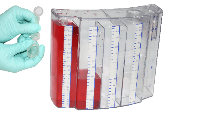 Het grote volume van de secreetcontainer biedt een ideale oplossing voor patiënten met een zeer hoog secretieniveau en bij gebruik van grote spoelvolumes om de pleuraholte te reinigen.