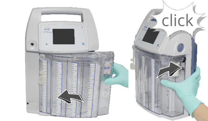 Atmos Thorax S201 installatie van reservoir op pomp feature, zodat duidelijk is hoe reservoir in pomp klikt.